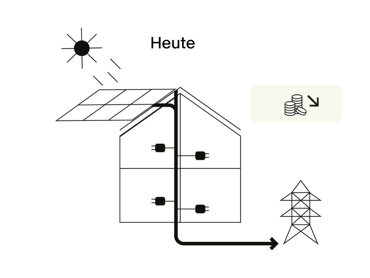 Heute wird ein grosser Teil der von Gebäuden erzeugten Solarenergie nicht vor Ort genutzt. Sie wird zu geringem Wert ins Netz eingespeist, obwohl sie direkt den Energiebedarf des Gebäudes decken könnte.
