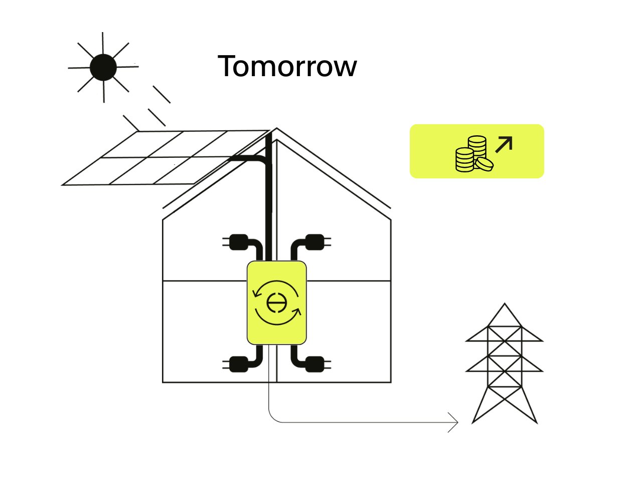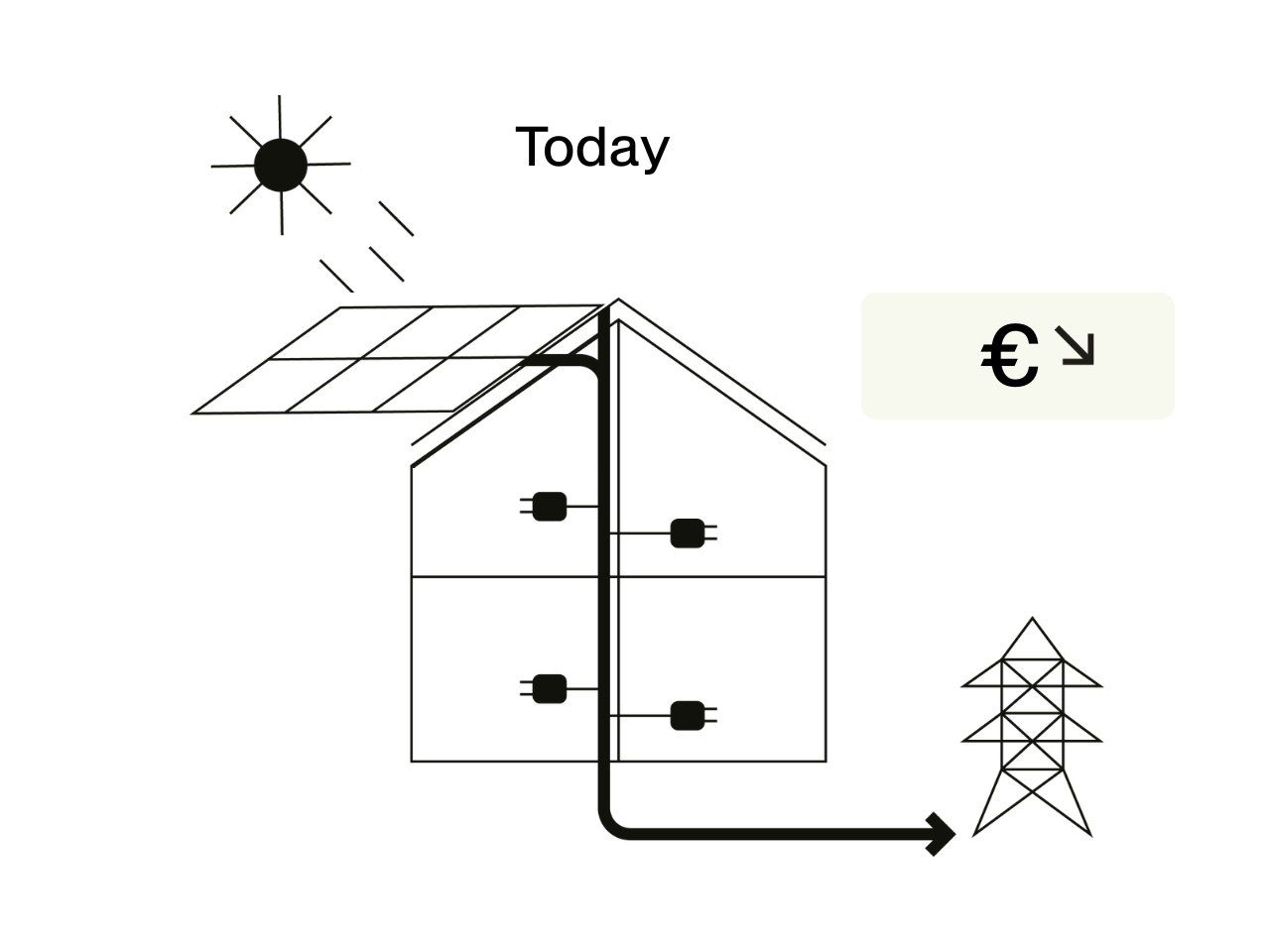 Solar energy is prioritised for on-site use, can be stored for later, and only the surplus is exported to the grid, when it creates the most value.